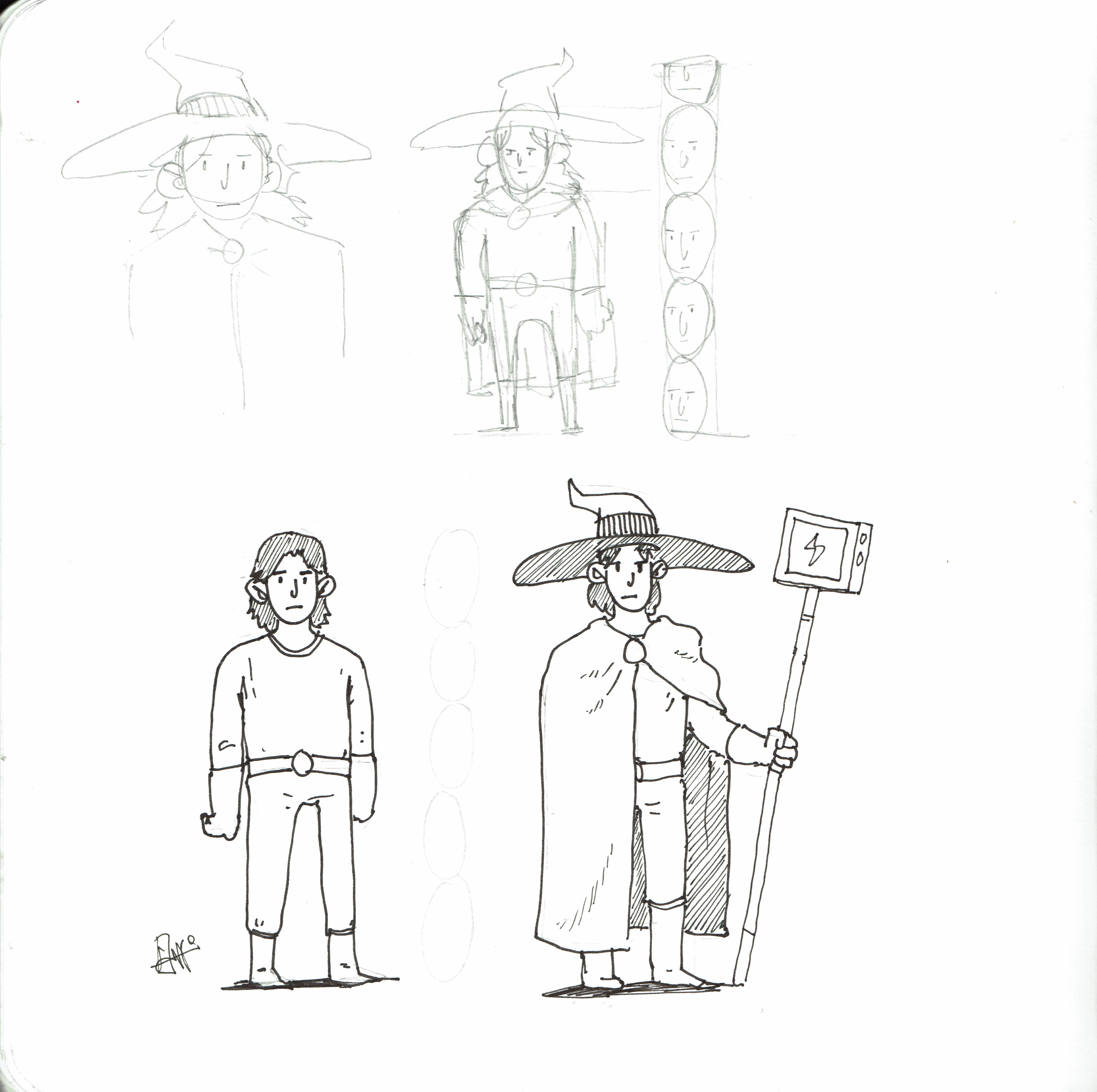 The next version was a much more cartoonish idea, hearkening back to Adventure Time in it’s inspirations. I toyed with the idea of giving him long fluffy hair, but it just made me think of Hermione Granger, which is completely the wrong picture. In the end I blended the two, leaning to the more realistic style, which I prefer in general, but with a simpler costume.